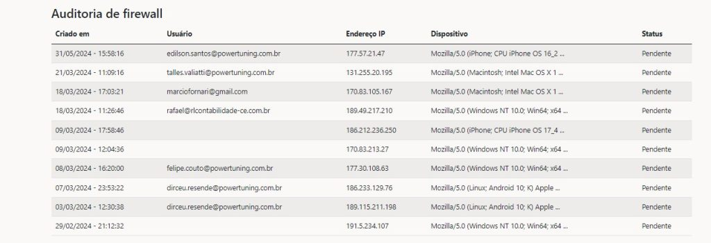 Every time a request arrives from an IP address that has been blocked or not by the Firewall, the administrator can access this history.
