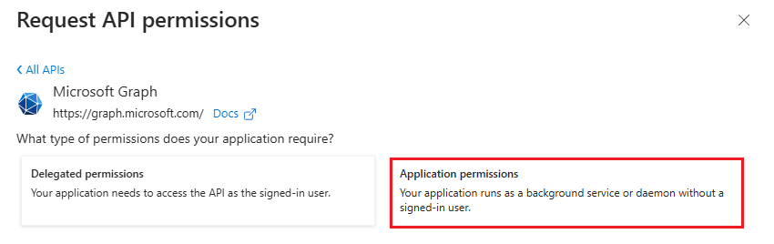Then select the **Application permissions** option.