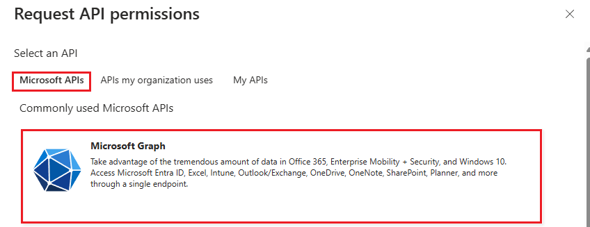 On the next screen, select the **Microsoft Graph** option.
