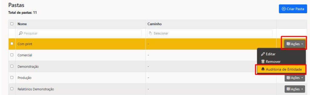 This entity audit logs a complete history of all changes, creations, and deletions performed by a user on the folder.