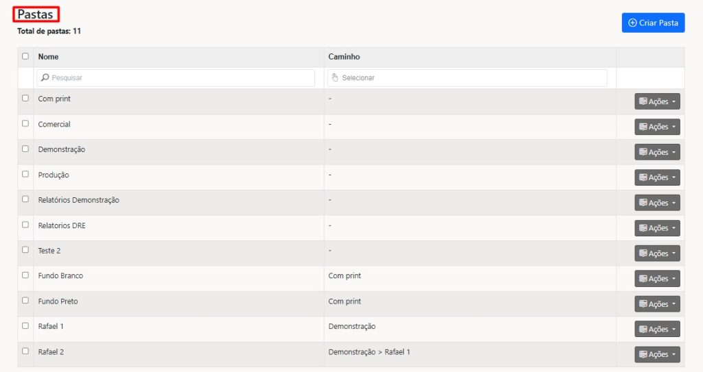 Folders in the portal enable multi-level organization of reports, allowing the creation of folders and subfolders. This means you can establish a hierarchy of folders with "N" levels, where one folder can contain other folders.