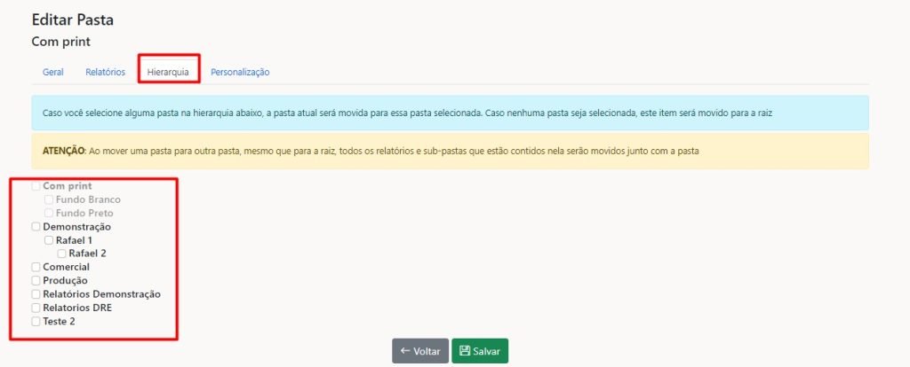 If I want to move the folder “With Screenshot” into the folder “Demonstration,” I simply need to open the edit screen for the "With Screenshot" folder, click on the destination folder, and the “With Screenshot” folder along with all its subfolders and reports will be moved into the “Demonstration” folder.