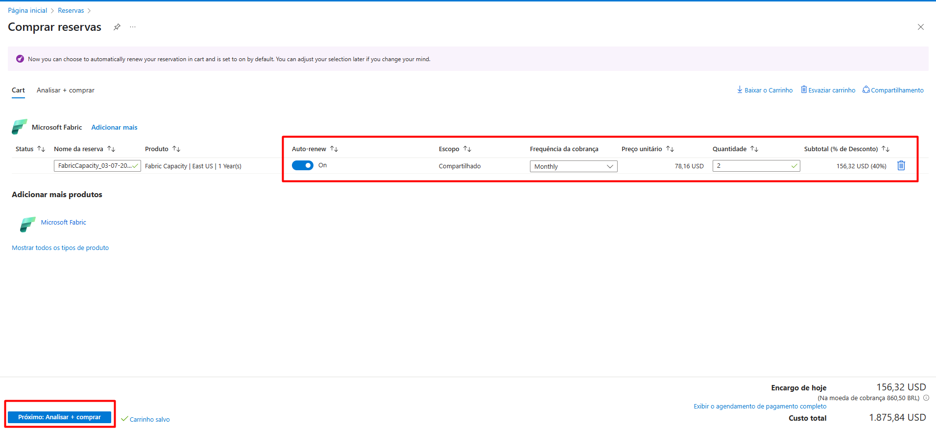 Pronto, sua capacidade Fabric está em uma instância reservada.
